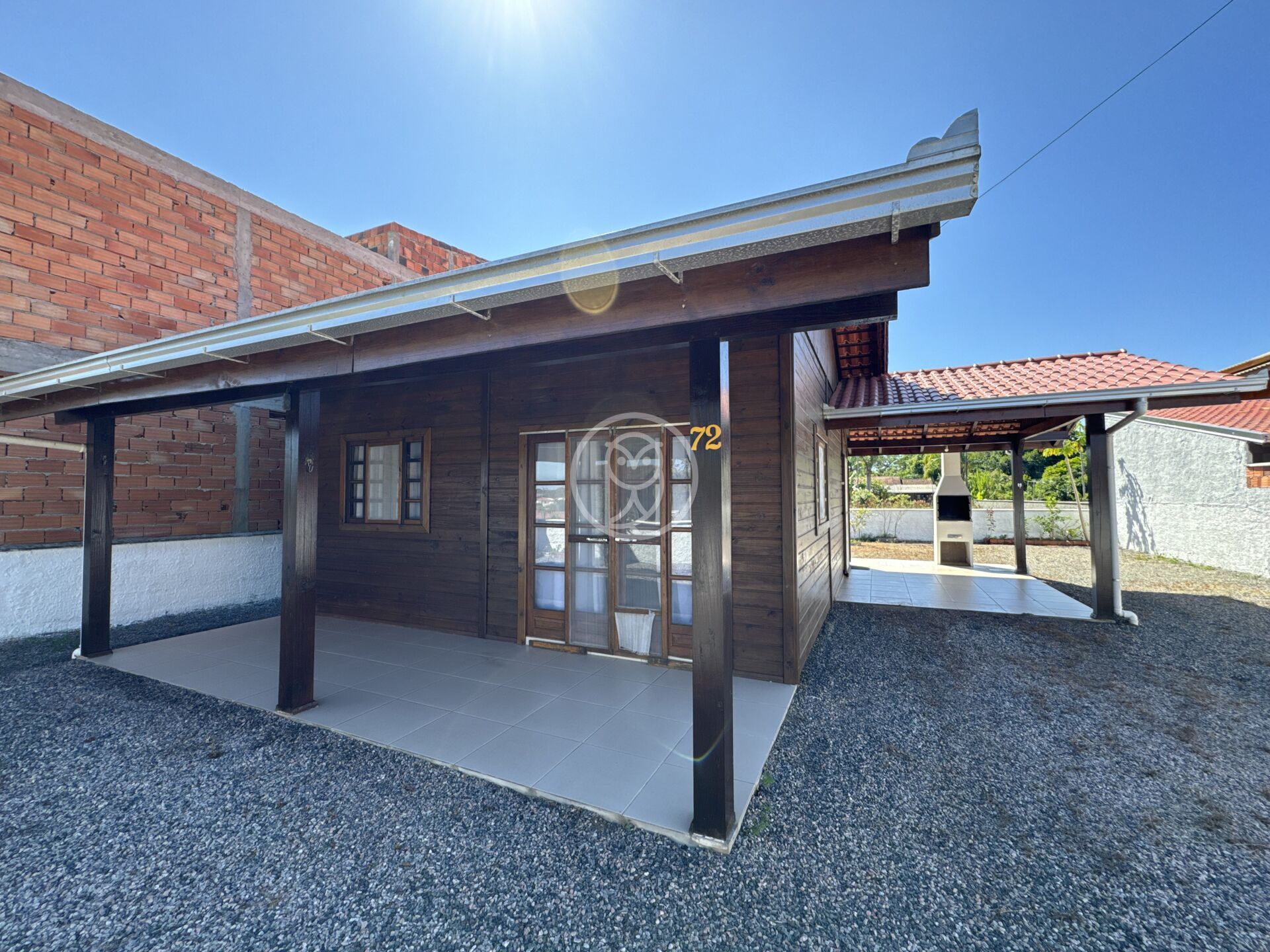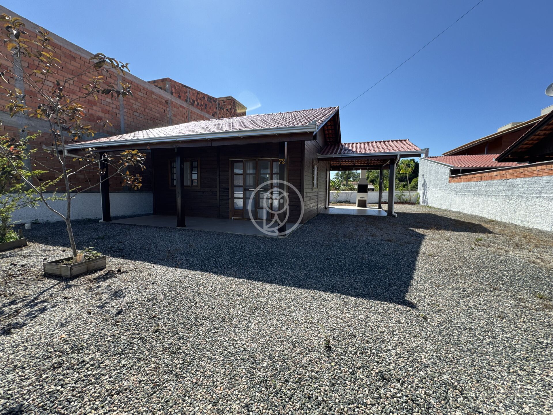 73,50m2 de Área Construída com Alvará de Construção, Habite-se em madeira tratada, calhas, drenagem, telhado impermeabilizado, esquadrias em canela, contendo 2 dormitórios, sala, cozinha, lavanderia, banheiro social, varanda, garagem, pergolado para churrasqueira, chuveiro de praia.
