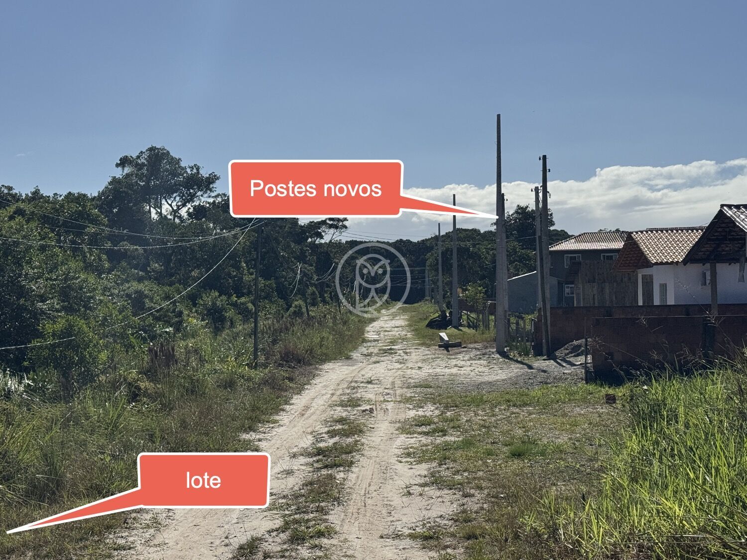 Na rua estão instalando os postes, então em breve este terreno terá Luz elétrica e fornecimento de água tratada.